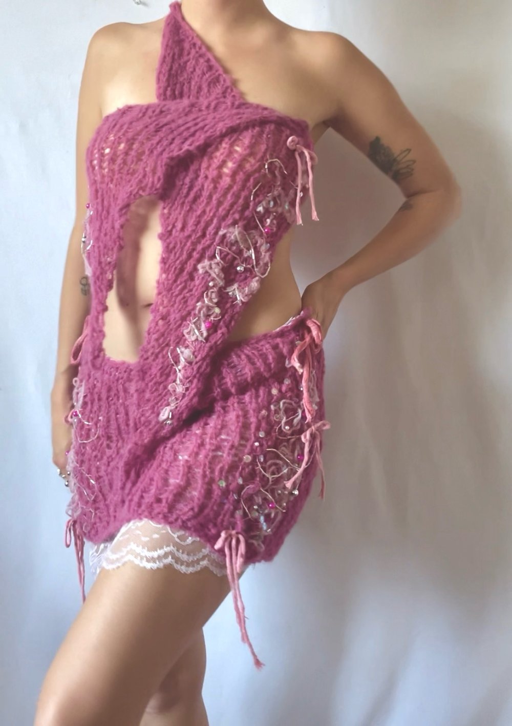 hand knit pink and